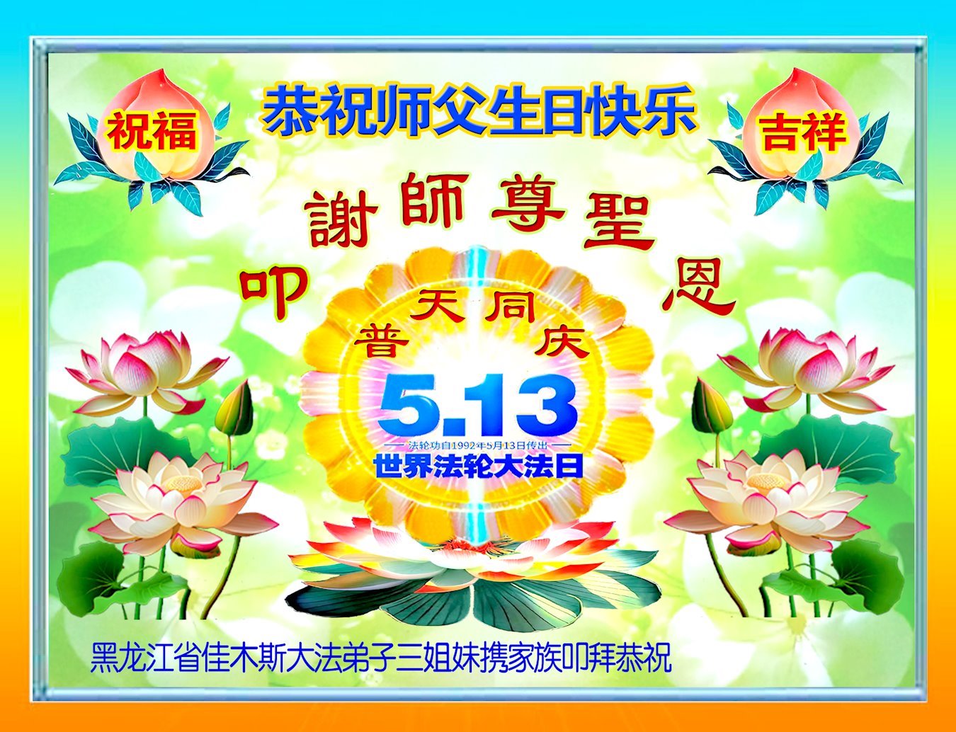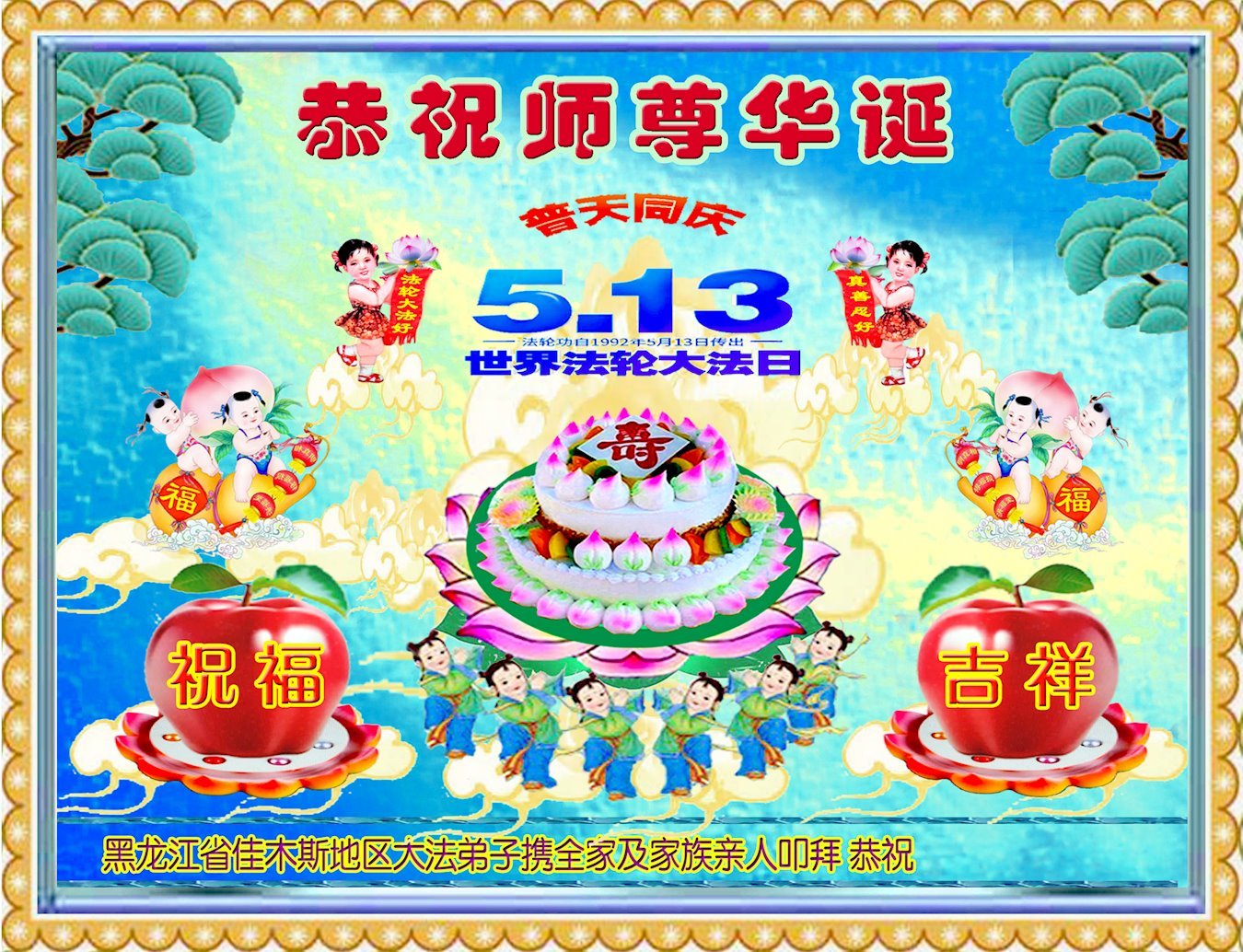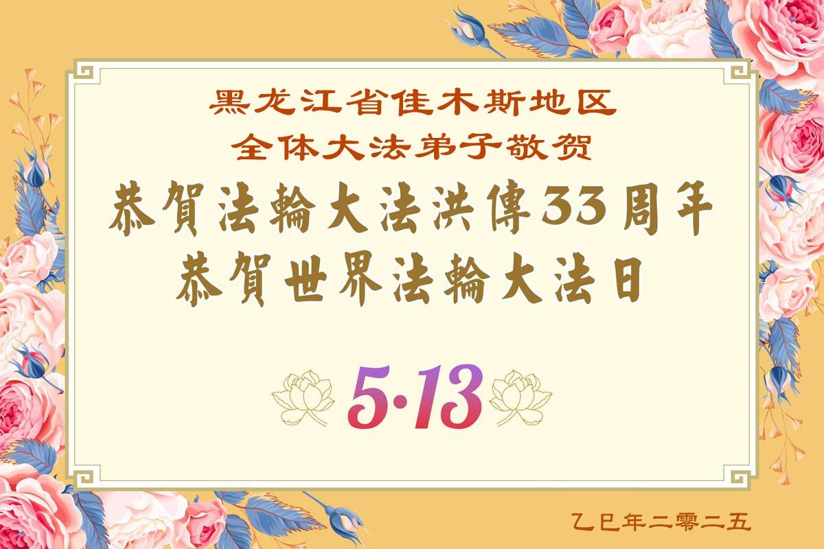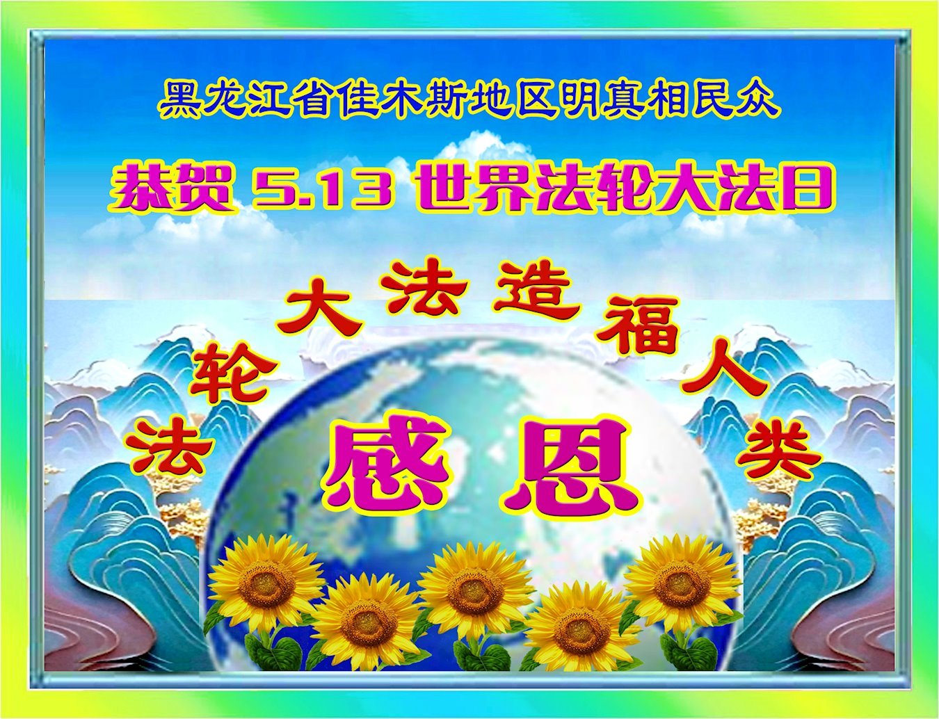 恭贺世界法轮大法日、恭祝师父生日快乐! 黑龙江省佳木斯地区全体大法弟子敬上 黑龙江省佳木斯地区明真相民众恭贺5.13世界法轮大法日!