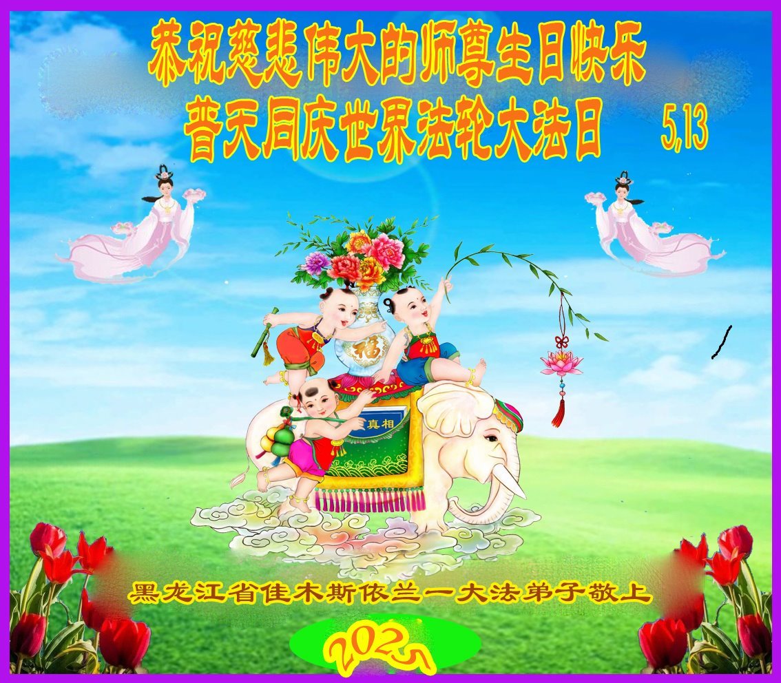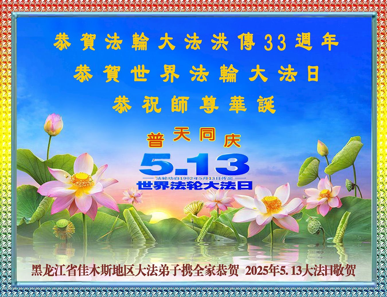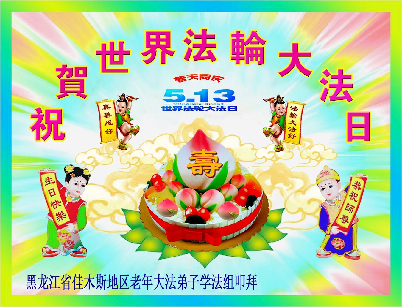 恭贺世界法轮大法日、恭祝师父生日快乐! 黑龙江省佳木斯地区全体大法弟子敬上 黑龙江省佳木斯地区明真相民众恭贺5.13世界法轮大法日!