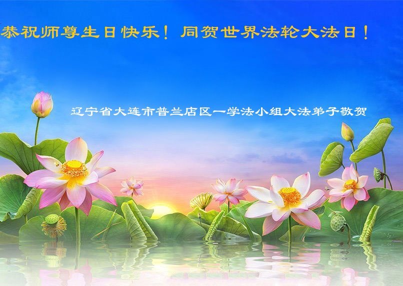 恭贺世界法轮大法日! 恭祝师尊生日快乐! 辽宁大连一学法小组全体大法弟子敬上 |