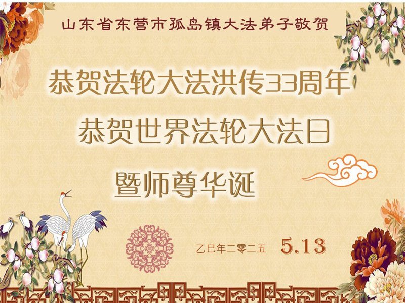 感恩师父慈悲救度!愿师父早日归来! 山东省烟台市一大法弟子孙女敬上 山东省东营市孤岛镇大法弟子恭贺世界法轮大法日!
