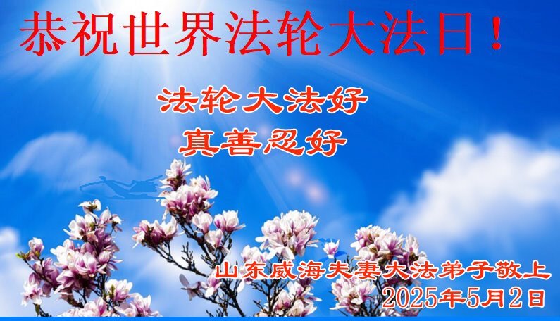 山东省威海夫妻二人大法弟子恭贺世界法轮大法日!
