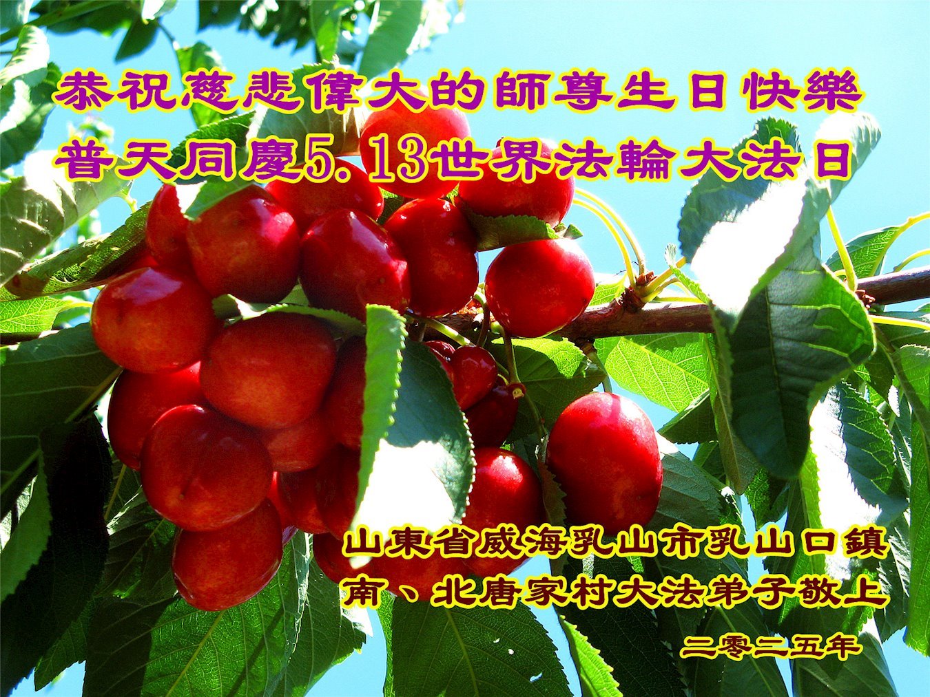 山东省威海乳山市乳山口镇南、北唐家村大法弟子恭贺世界法轮大法日暨师尊生日快乐!