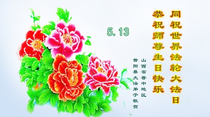 恭祝师尊生日快乐! 恭贺世界法轮大法日! 山西省阳泉市三区两县的大法弟子敬上 山西省晋中地区昔阳县大法弟子恭贺513世界法轮大法日暨师尊生日快乐!