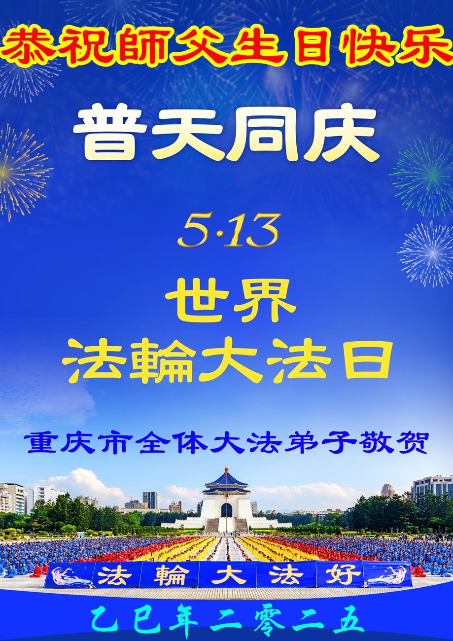 恭贺世界法轮大法日! 重庆南岸区黄角桠镇大法弟子敬上 重庆市一大法弟子恭贺世界法轮大法日!