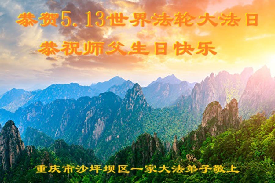 感谢师父对大法弟子的慈悲苦度! 重庆市沙坪坝区一家大法弟子恭贺世界法轮大法日暨师父74华诞!
