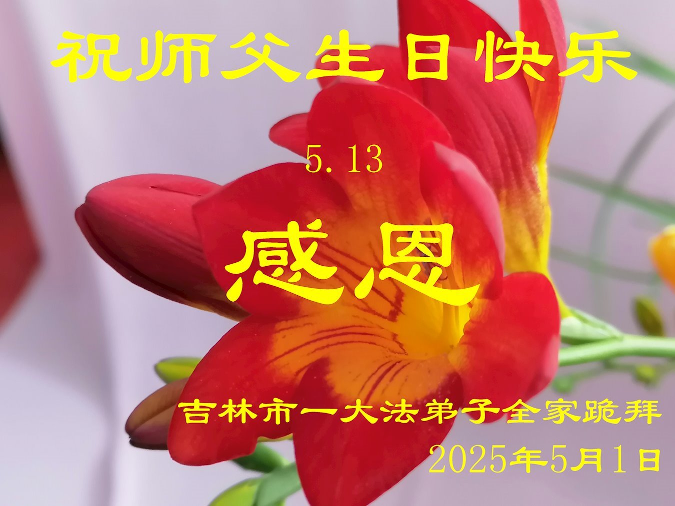 感恩慈悲师尊救度,叩拜师尊。 吉林省吉林市桦甸市一大法弟子敬上 二零二五年四月三十日 吉林省吉林市一大法弟子全家恭祝师父生日快乐!恭贺世界法轮大法日!