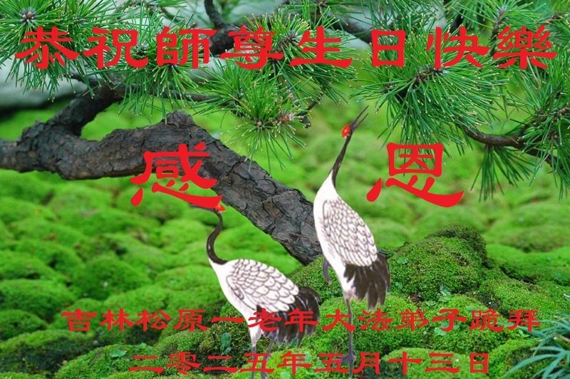 恭祝师尊生日快乐!恭贺世界法轮大法日! 吉林省白山市大法弟子敬上 二零二五年五月二日 吉林省白山市老年大法弟子恭贺世界法轮大法日暨敬祝师尊华诞!