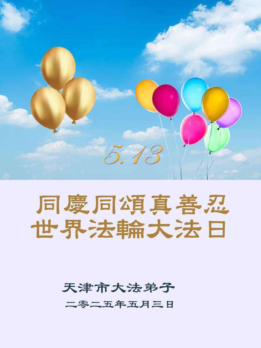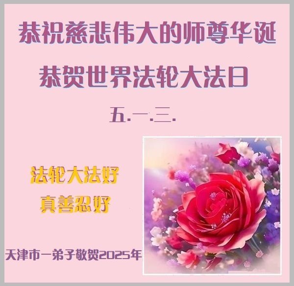 【明慧网二零二五年五月十一日】 天津市一大法弟子恭祝慈悲伟大的师尊华诞!恭贺世界法轮大法日!