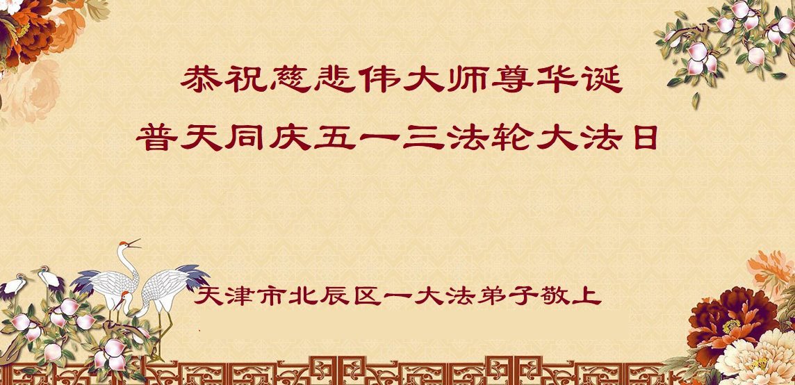 恭祝慈悲伟大的师尊华诞!恭贺世界法轮大法日! 天津市一大法弟子敬上 天津市宁河区大法弟子恭贺世界法轮大法日暨师尊华诞!