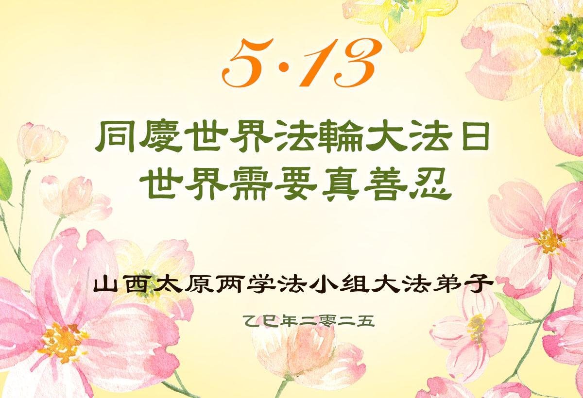 山西省太原市大法弟子恭贺五·一三世界法轮大法日!敬祝慈悲伟大的师尊生日快乐!