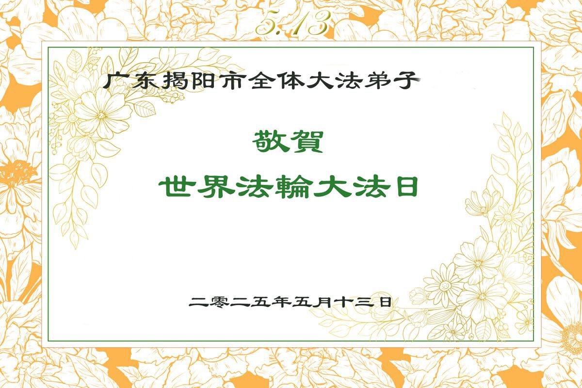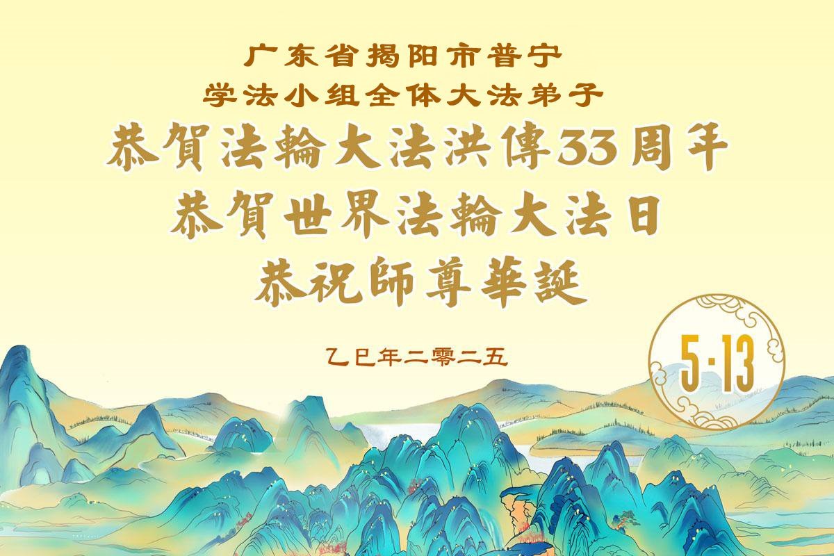 广东省揭阳市普宁大法弟子恭贺世界法轮大法日暨敬祝师尊华诞!
