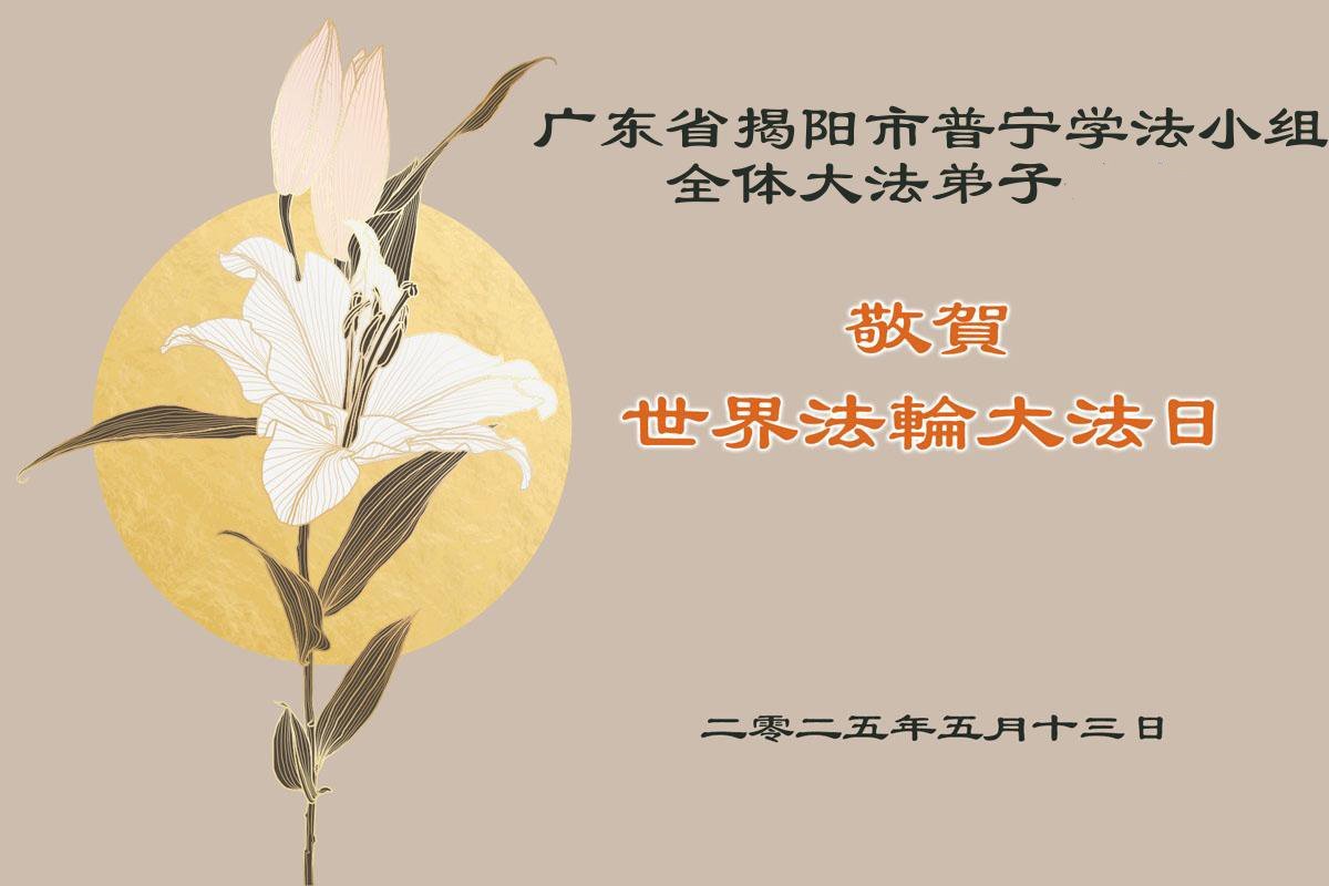 广东省揭阳市普宁学法小组大法弟子恭贺世界法轮大法日暨敬祝师尊华诞!