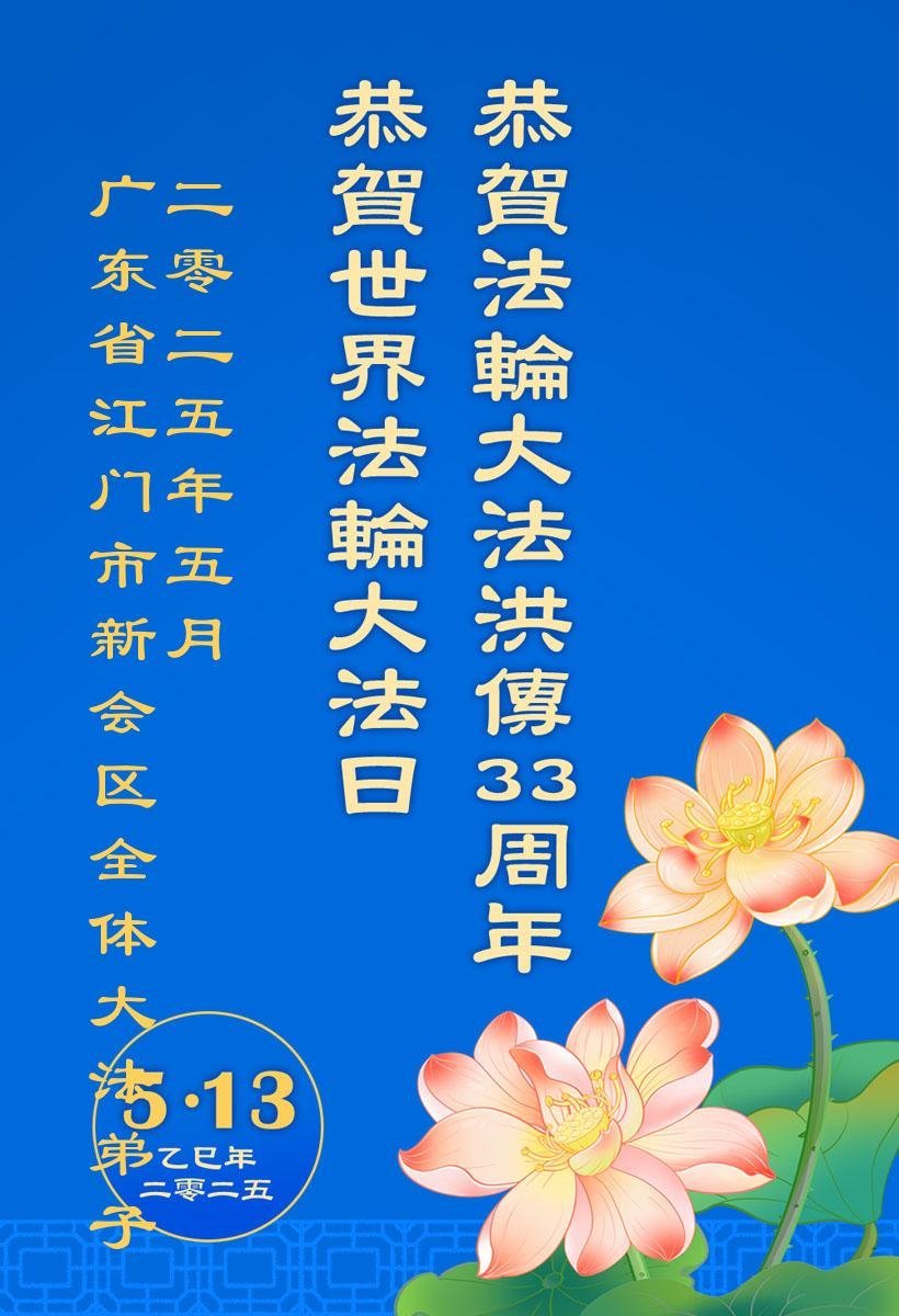 广东省江门市新会区大法弟子恭贺世界法轮大法日暨敬祝师尊华诞!