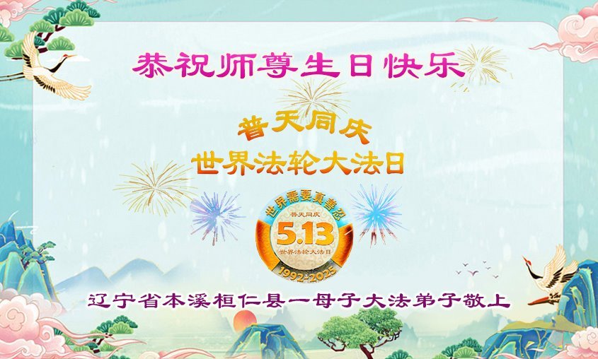 恭祝慈悲伟大的师尊生日快乐!敬贺5.13世界法轮大法日! 辽宁省本溪市一大法弟子敬上 2025年5月1日 |