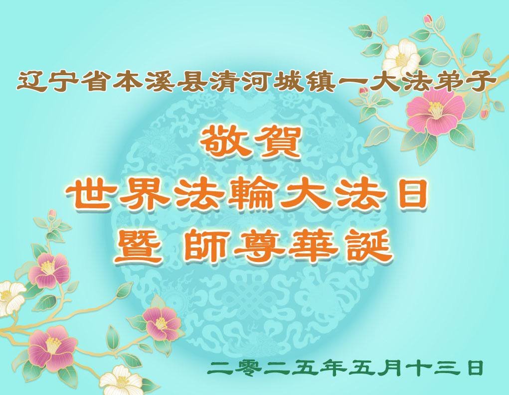 恭贺世界法轮大法日! 辽宁省本溪市一大法弟子敬上 二零二五年五月一日 辽宁省本溪县清河城镇一大法弟子恭贺世界法轮大法日暨敬祝师尊华诞!