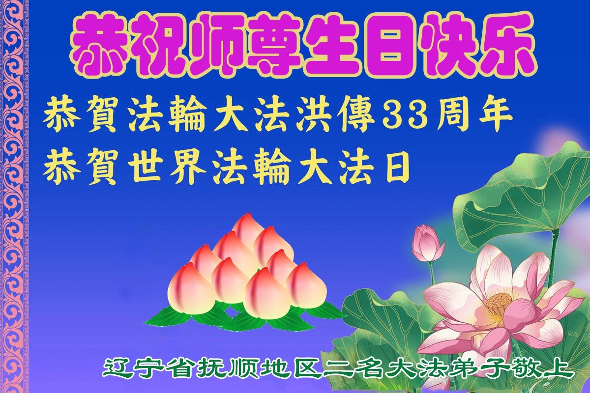 辽宁省抚顺地区二名大法弟子恭贺世界法轮大法日暨师尊生日快乐!