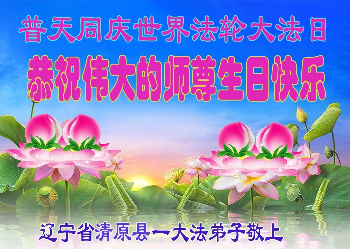 恭贺世界法轮大法日! 恭祝师尊华诞! 辽宁省抚顺市清原县11位大法弟子敬上 辽宁抚顺市一大法弟子恭贺世界法轮大法日!恭祝师尊生日快乐!