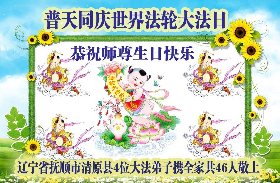 恭祝世界法轮大法日暨师尊华诞! 辽宁省抚顺市清原县4位大法弟子携全家共46人敬上 辽宁省抚顺市清原县11位大法弟子恭贺世界法轮大法日暨师尊华诞!