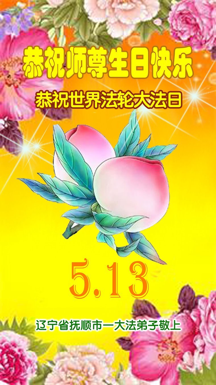恭贺世界法轮大法日!法轮大法好!真善忍好! 恭祝慈悲伟大的师父生日快乐! 抚顺市城东新区大法弟子敬上 |