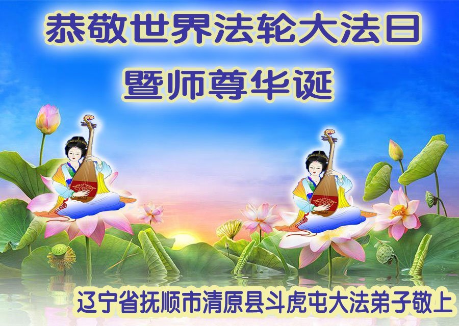 恭贺世界法轮大法日! 恭祝师尊生日快乐! 辽宁抚顺市一大法弟子敬上 辽宁省抚顺市清原县斗虎屯大法弟子敬贺世界法轮大法日暨师尊华诞!