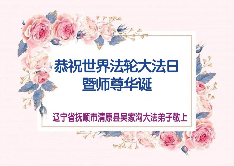 恭贺世界法轮大法日! 恭祝师尊华诞! 辽宁省抚顺市清原县土口子乡大法弟子敬上 辽宁省抚顺市清原县吴家沟大法弟子恭贺世界法轮大法日暨师尊华诞!
