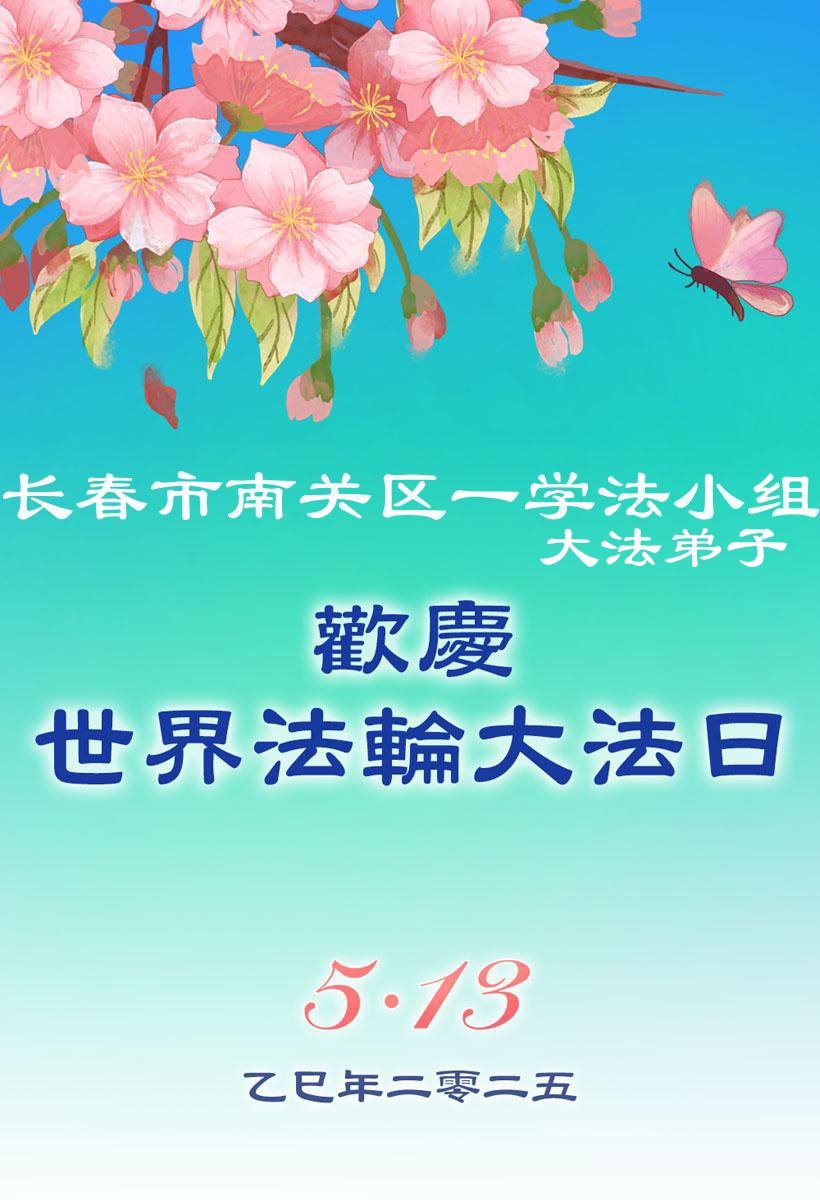 【明慧网二零二五年五月十一日】 吉林省长春市一学法小组全体大法弟子敬贺世界法轮大法日!