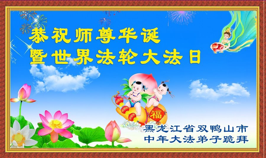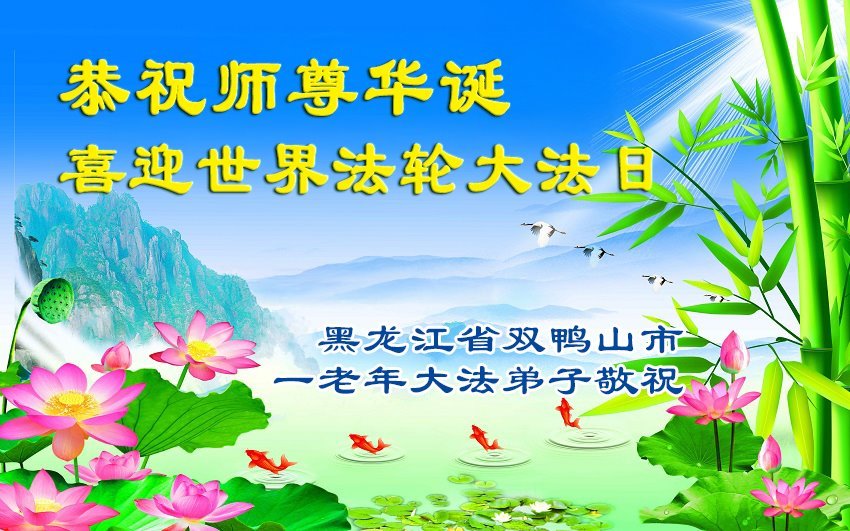 普天同庆世界法轮大法日! 恭祝慈悲伟大的师尊华诞! 黑龙江省绥化市大法弟子敬上 黑龙江省双鸭山市集贤县大法弟子恭祝师尊生日快乐!恭贺世界法轮大法日!