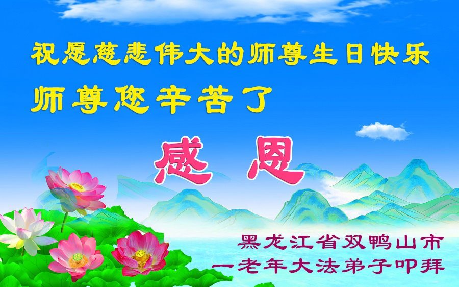 【明慧网二零二五年五月十一日】 黑龙江省双鸭山市中年大法弟子恭贺世界法轮大法日暨敬祝师尊生日快乐!
