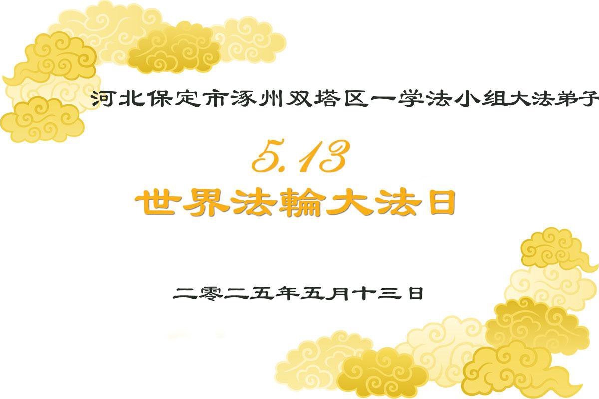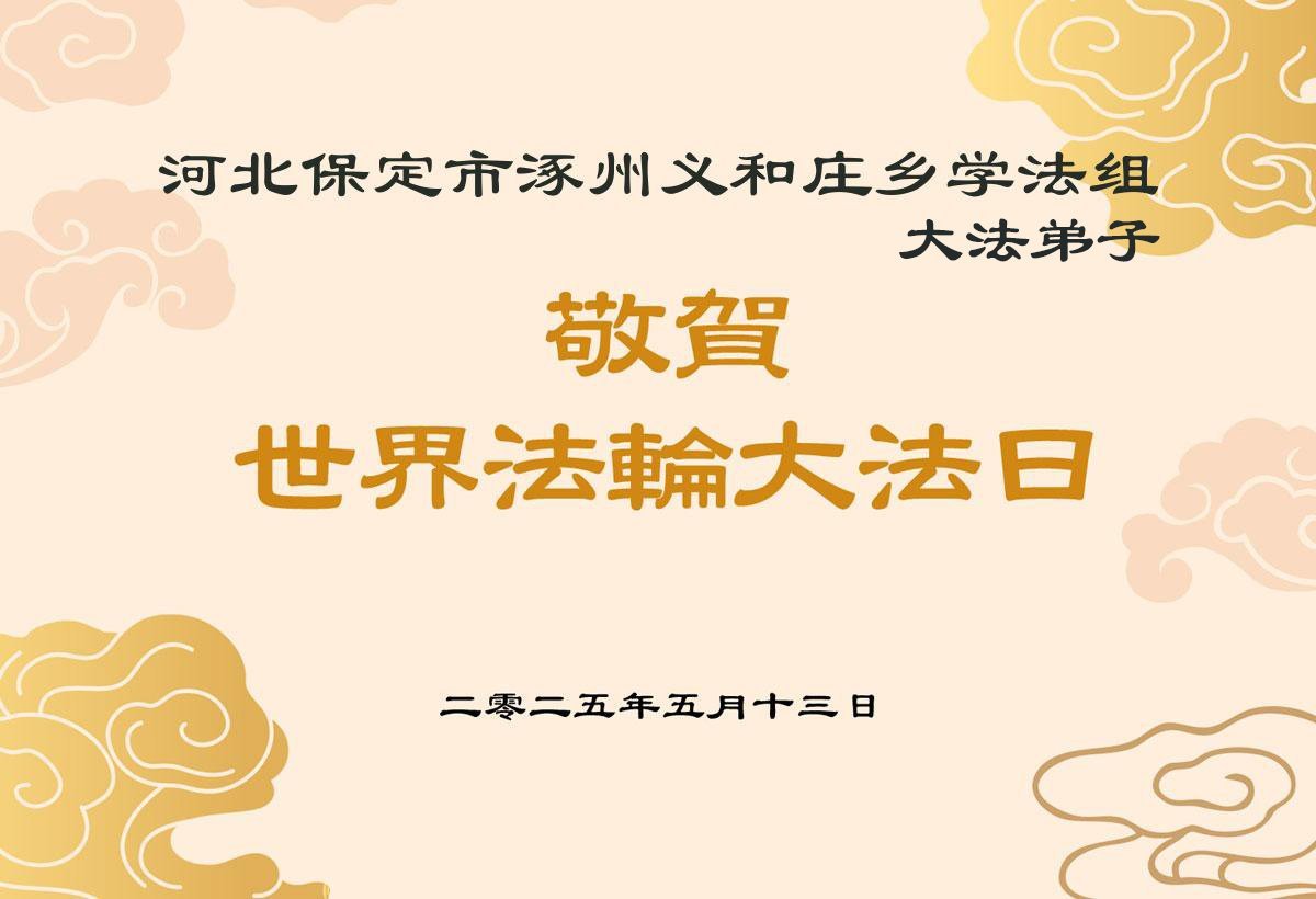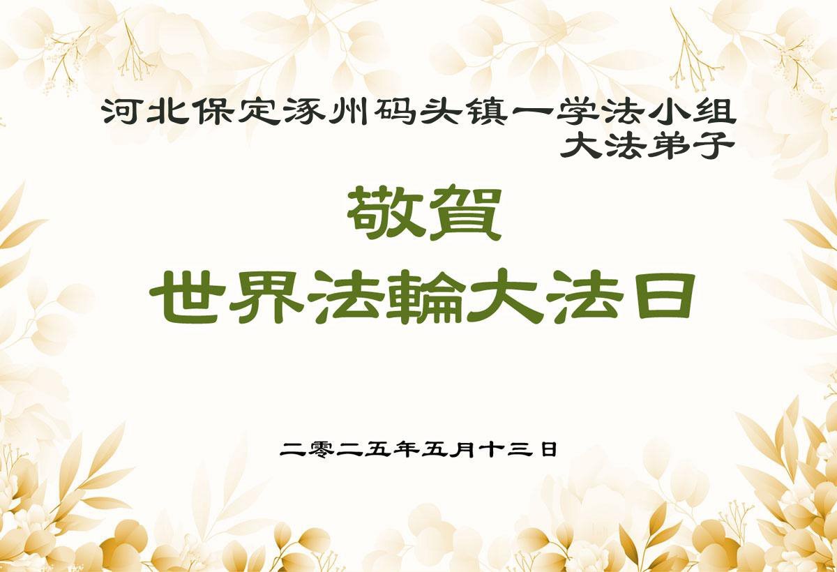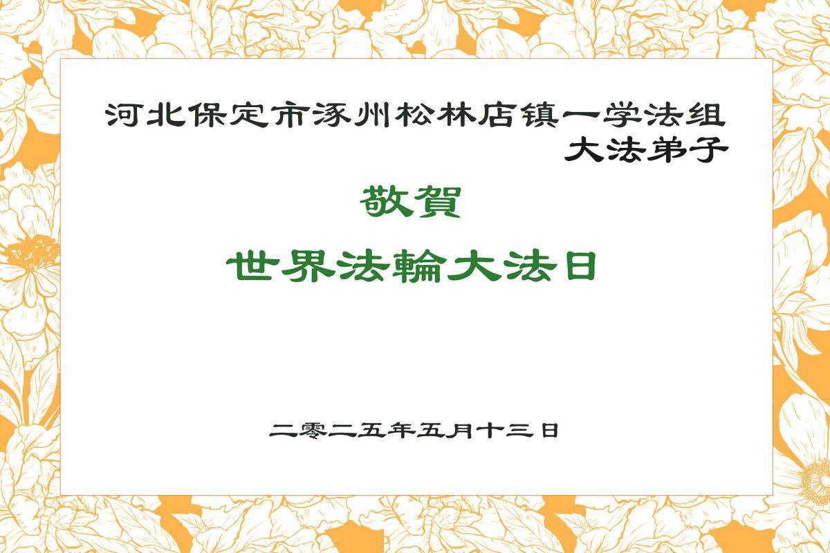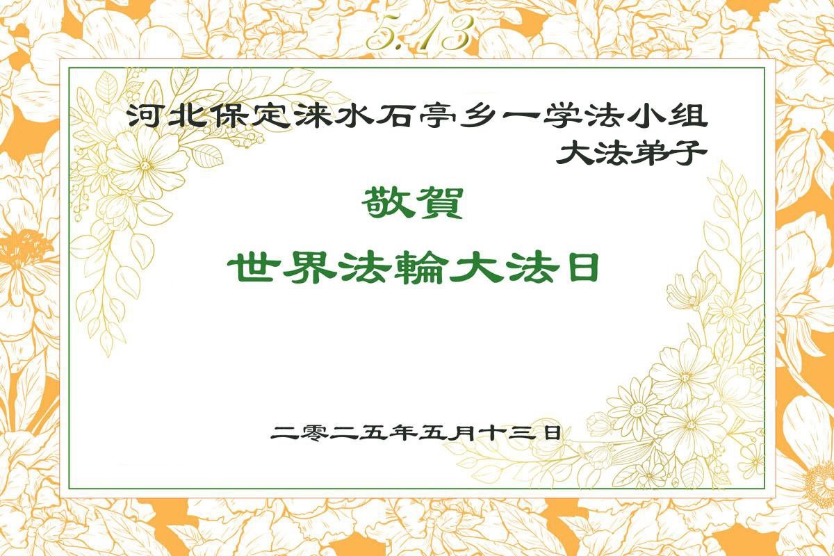 【明慧网二零二五年五月十一日】 河北省保定市涿州义和庄乡一学法小组大法弟子恭贺世界法轮大法日!