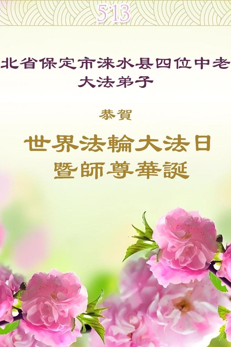 感恩师父慈悲救度! 河北省保定市高碑店市一老年大法弟子学法小组全体敬上 河北省保定市涞水南片大法弟子恭贺世界法轮大法日!