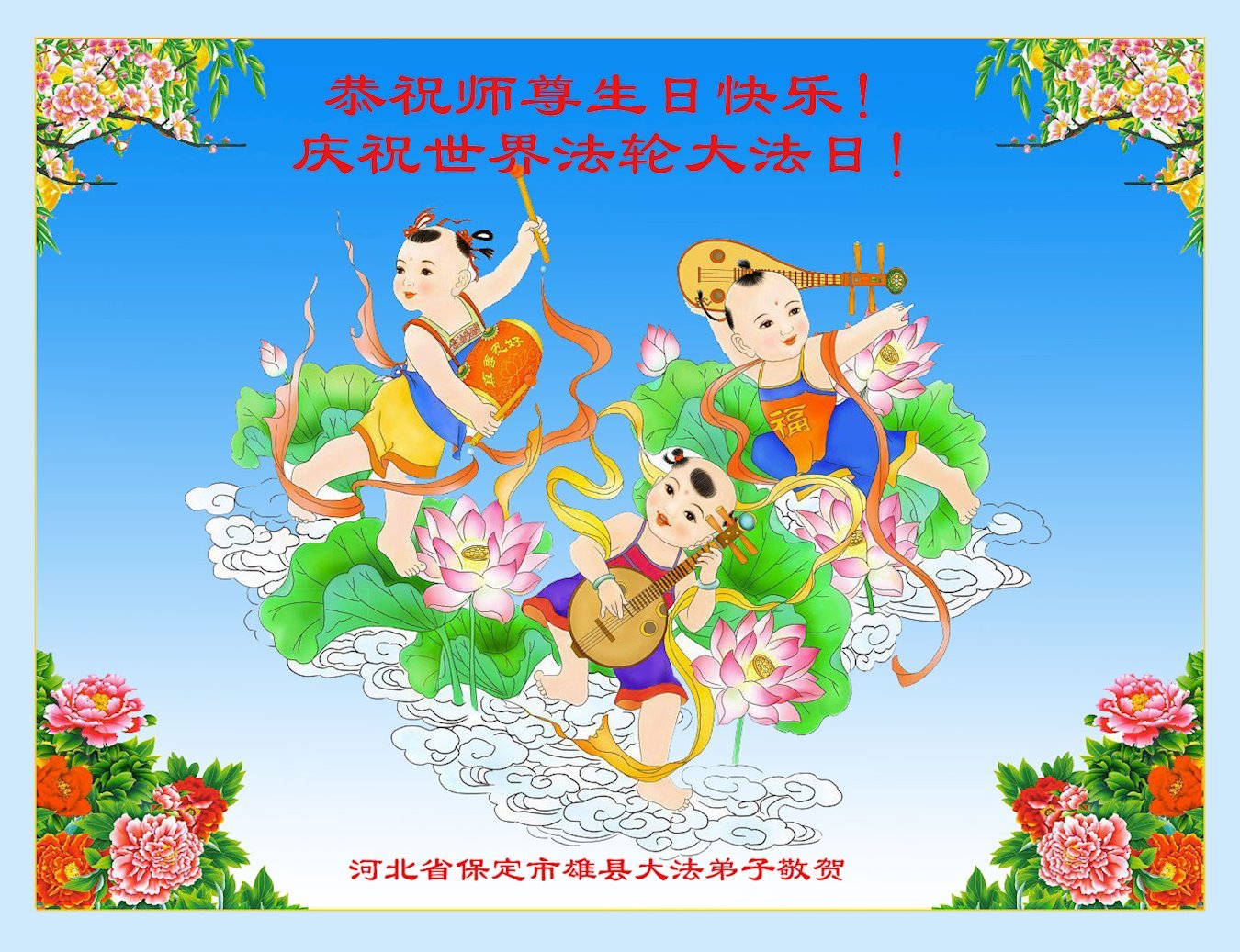 恭祝师父生日快乐!恭贺世界法轮大法日! 河北省保定涞水南片大法弟子敬上 河北省保定市定州市一夫妻大法弟子携孙子孙女恭贺世界法轮大法日!