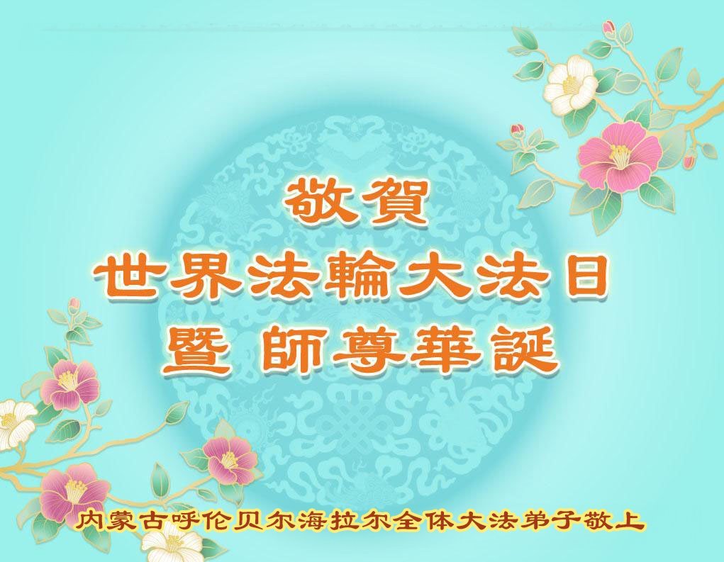 恭贺世界法轮大法日! 恭祝慈悲伟大的师父生日快乐! 内蒙古赤峰市一学法小组大法弟子敬上 内蒙古呼伦贝尔海拉尔大法弟子恭贺世界法轮大法日暨敬祝师尊华诞!