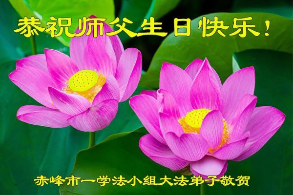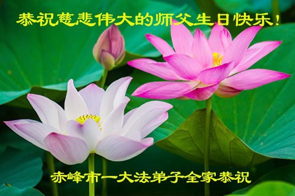 恭贺世界法轮大法日! 恭祝慈悲伟大的师父生日快乐! 内蒙古赤峰市一家姐妹大法弟子敬上 内蒙古赤峰市一学法小组大法弟子恭贺世界法轮大法日暨慈悲伟大的师父生日快乐!