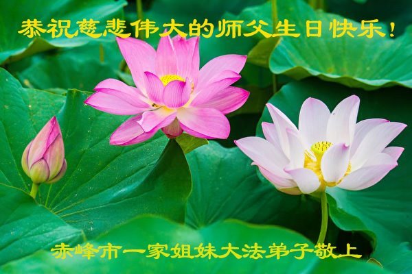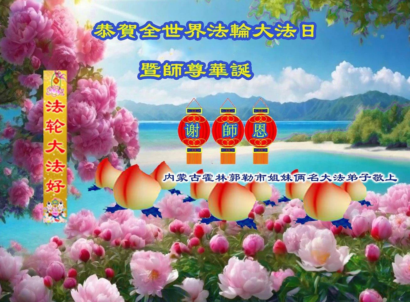 恭贺世界法轮大法日! 恭祝慈悲伟大的师父生日快乐! 内蒙古赤峰市一大法弟子全家敬上 内蒙古赤峰市一家姐妹大法弟子恭贺世界法轮大法日暨师尊生日快乐!