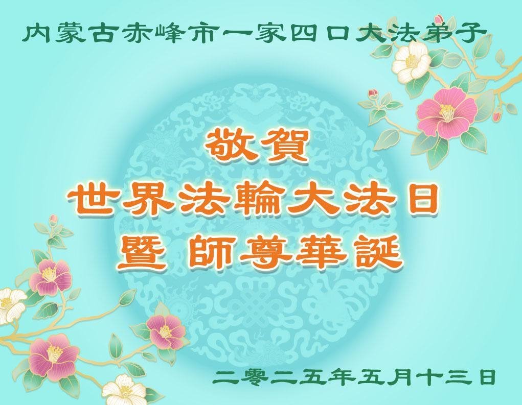 内蒙古赤峰市一家四口大法弟子恭贺世界法轮大法日暨师尊华诞!