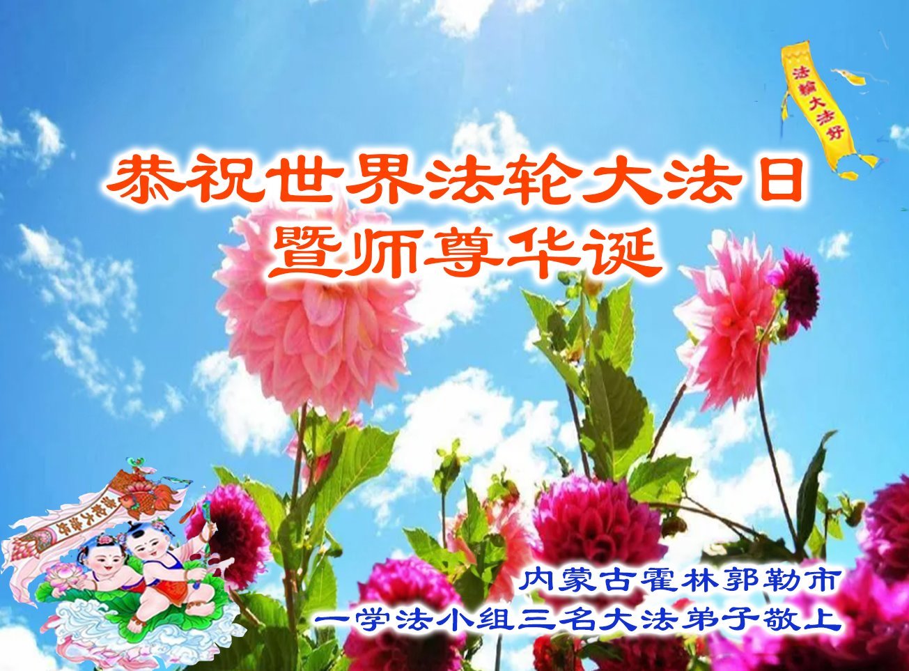 恭贺世界法轮大法日! 恭祝师尊华诞快乐! 内蒙古霍林郭勒市姐妹两名大法弟子敬上 内蒙古自治区通辽市霍林郭勒市一学法小组三名大法弟子恭贺世界法轮大法日!恭祝师尊华诞!