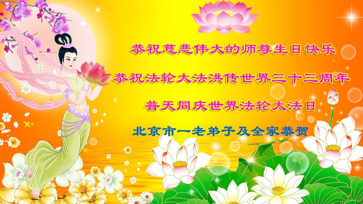 恭贺世界法轮大法日! 恭祝慈悲伟大的师尊生日快乐! 北京市一大法弟子敬上 北京昌平一大法弟子恭祝师父生日快乐!