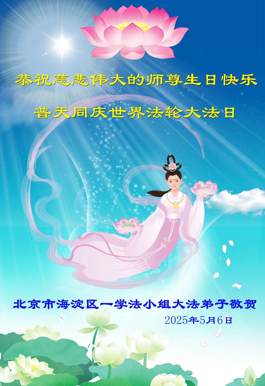 【明慧网二零二五年五月十一日】 北京大法弟子恭贺世界法轮大法日暨师尊华诞!