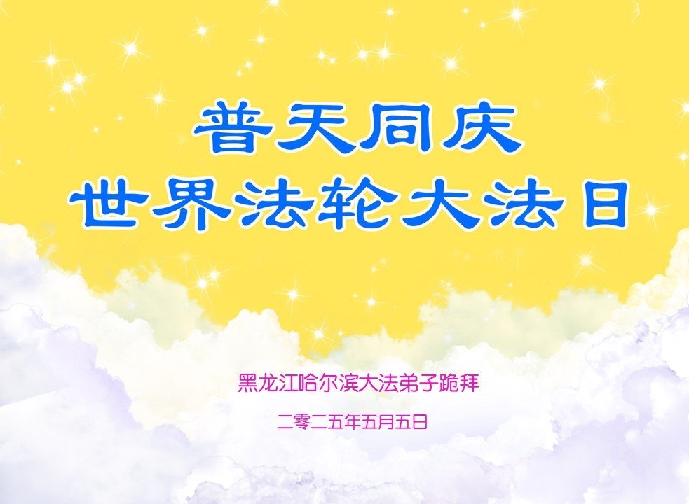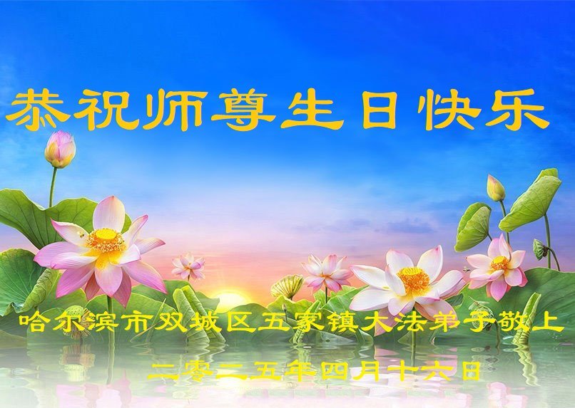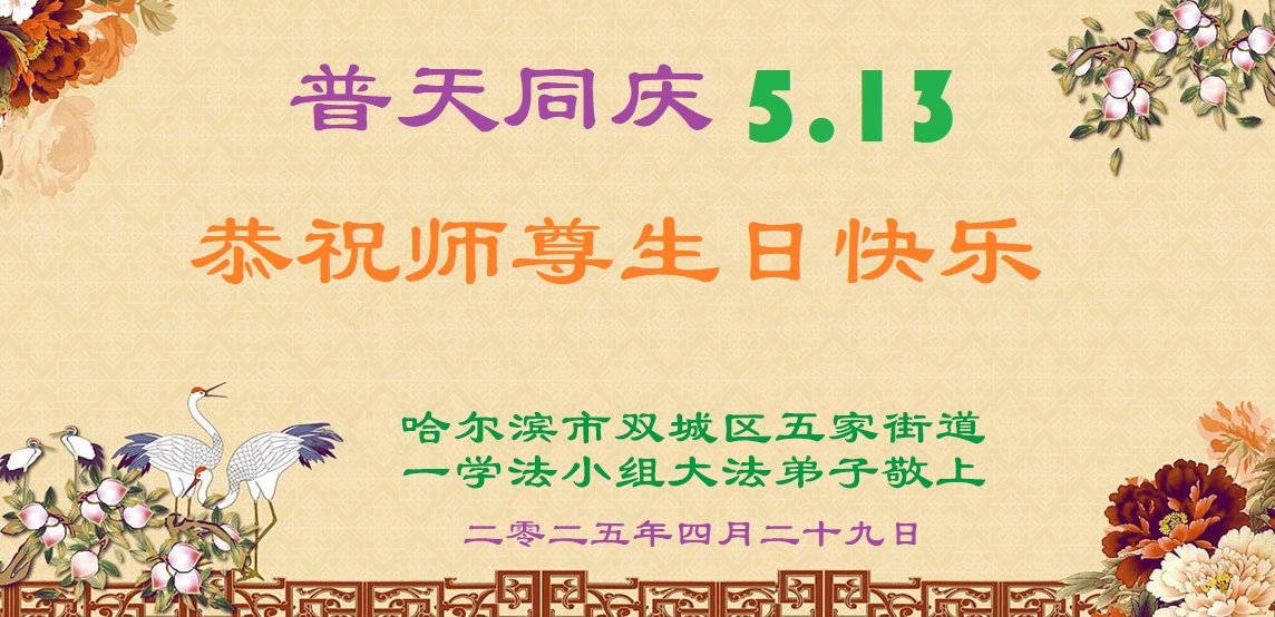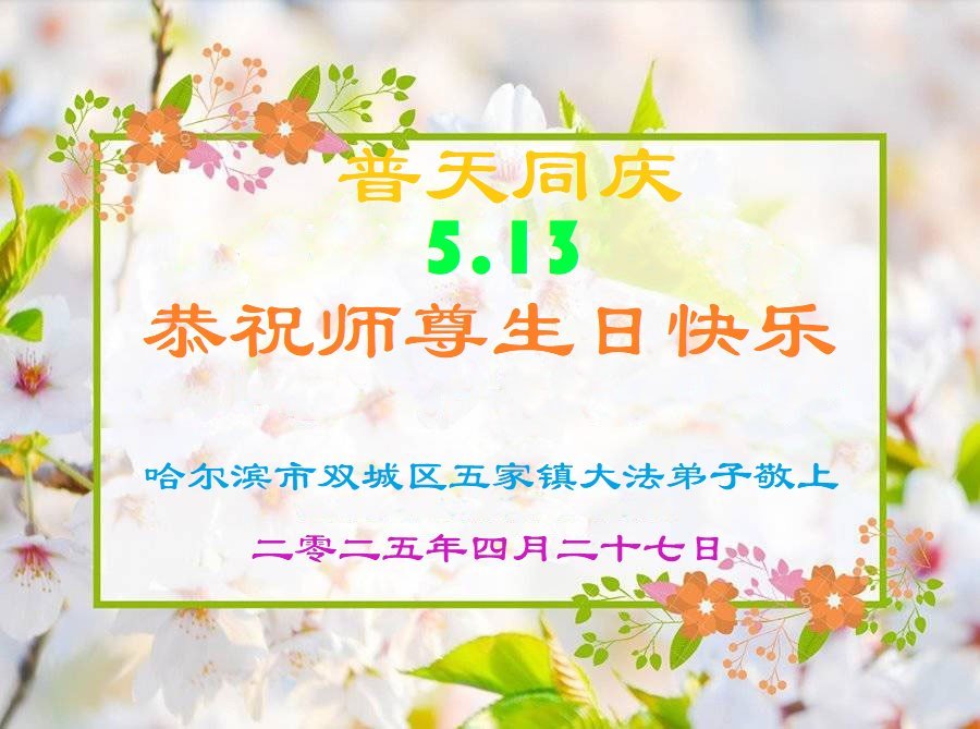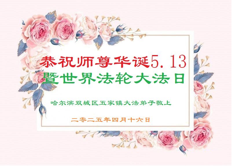 【明慧网二零二五年五月十一日】 黑龙江省哈尔滨市双城区五家镇大法弟子恭贺世界法轮大法日暨师尊生日快乐!