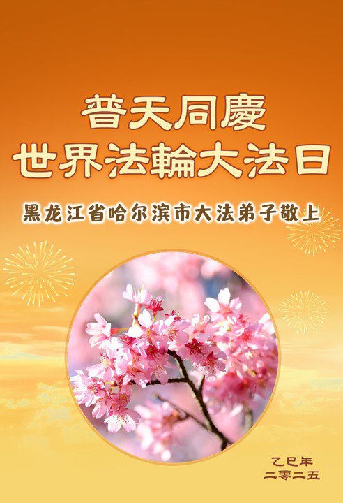 恭祝慈悲伟大的师尊生日快乐!庆祝世界法轮大法日! 黑龙江省哈尔滨市香坊区一大法弟子敬上 二零二五年五月六日 黑龙江哈尔滨市大法弟子恭贺世界法轮大法日!恭祝师尊生日快乐!
