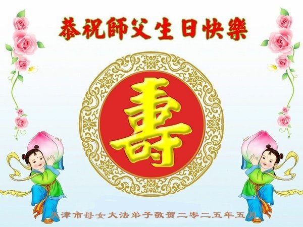恭祝师尊生日快乐!恭贺世界法轮大法日! 天津市河西区一老年大法弟子与孩子敬上 二零二五年四月三十日 天津市河东区五名大法弟子恭祝慈悲伟大的师尊生日快乐!恭贺世界法轮大法日!