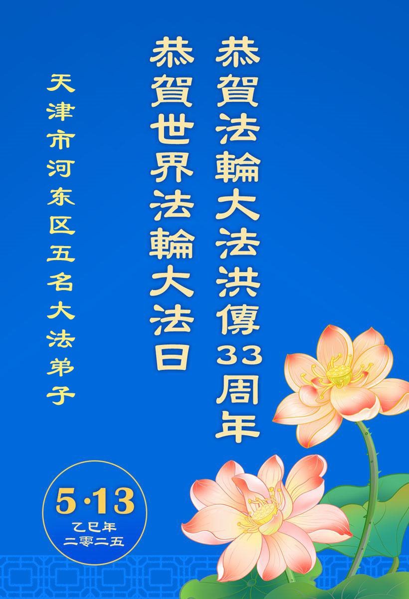【明慧网二零二五年五月十一日】 天津市武清区大法弟子恭贺世界法轮大法日!