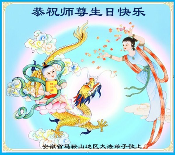 安徽省马鞍山地区一大法弟子恭祝慈悲伟大的师尊生日快乐!恭贺世界法轮大法日!