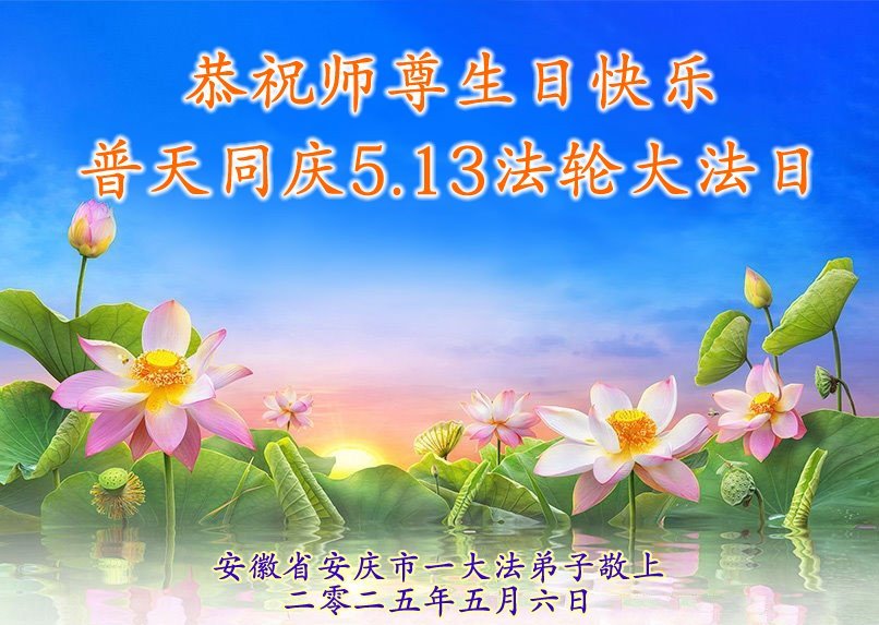 安徽省安庆市一大法弟子恭贺世界法轮大法日暨敬祝慈悲伟大的师尊生日快乐!