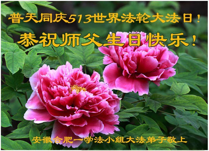 安徽省合肥市一学法小组大法弟子恭贺世界法轮大法日!恭贺法轮大法洪传33周年!恭祝师尊华诞!
