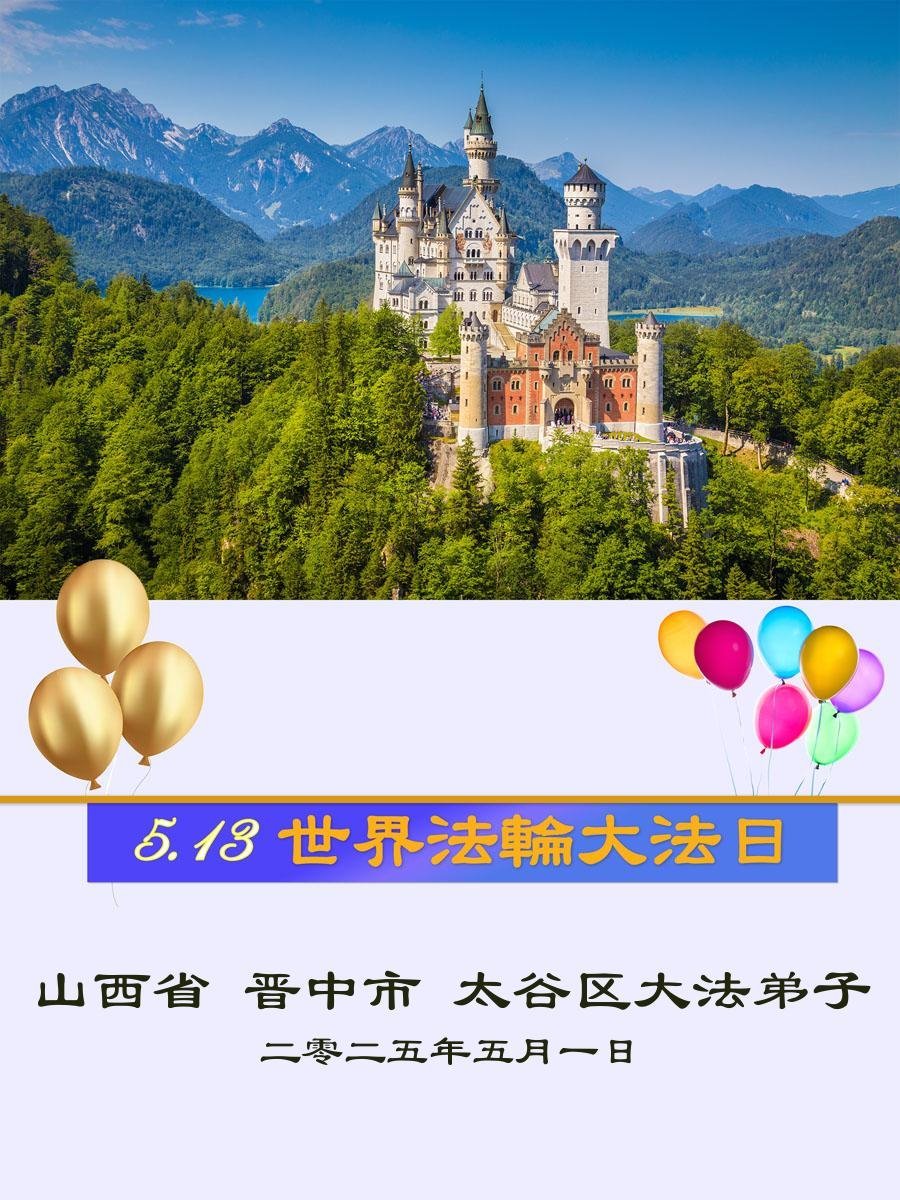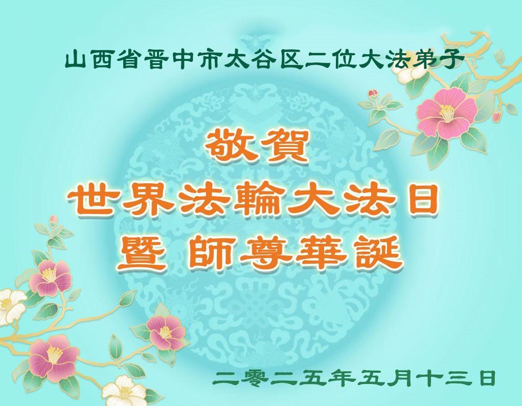 【明慧网二零二五年五月十一日】 山西省晋城市沁水县大法弟子恭贺世界法轮大法日暨师尊生日快乐!