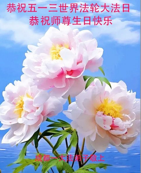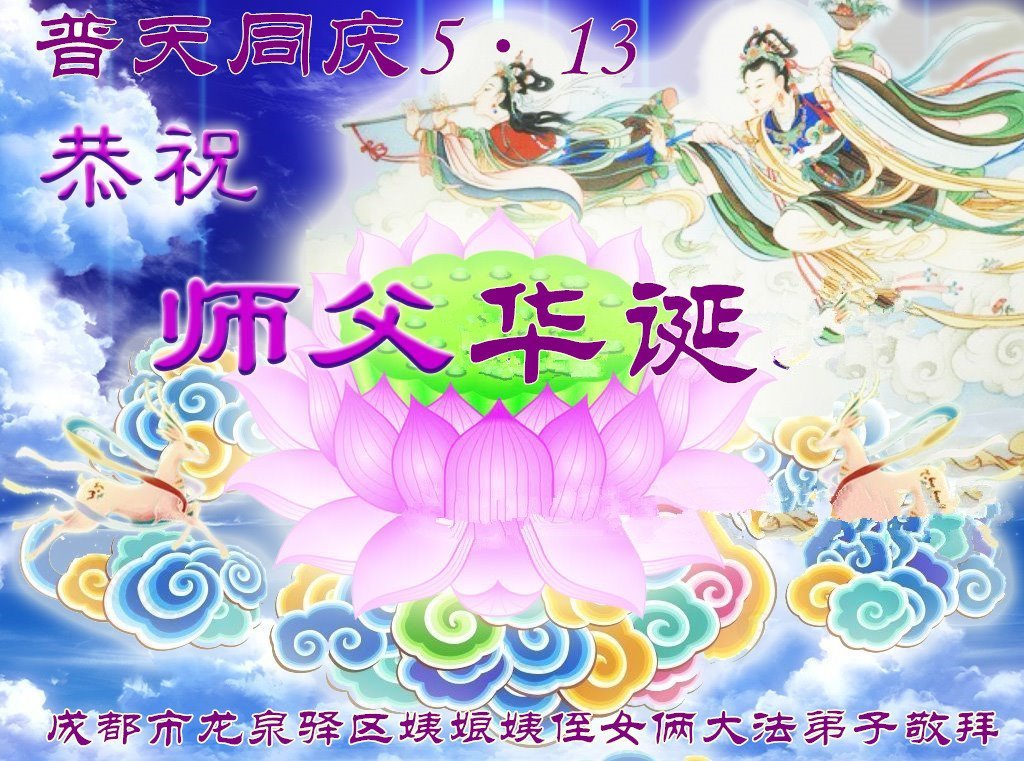 恭祝师尊生日快乐!恭贺世界法轮大法日! 四川省成都市龙泉驿区一老年女大法弟子敬上 四川省成都市龙泉驿区姨娘姨侄女俩大法弟子普天同庆5·13世界法轮大法日!恭祝师父华诞!