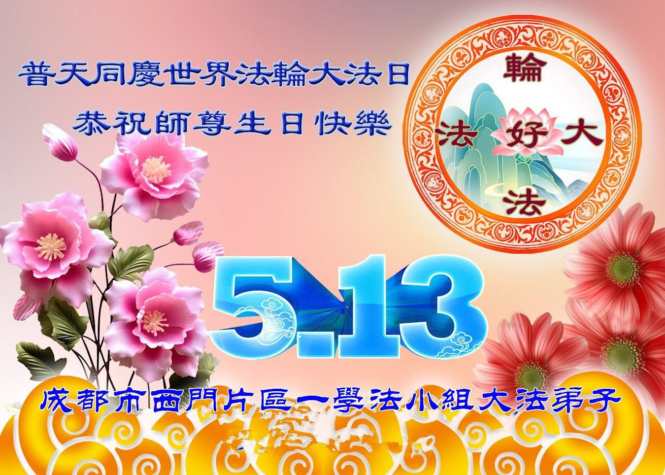 四川省成都市西门片区一学法小组大法弟子恭贺世界法轮大法日!