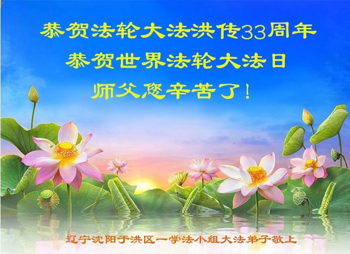 辽宁省沈阳市于洪区一学法小组大法弟子恭贺世界法轮大法日暨敬祝师尊华诞!