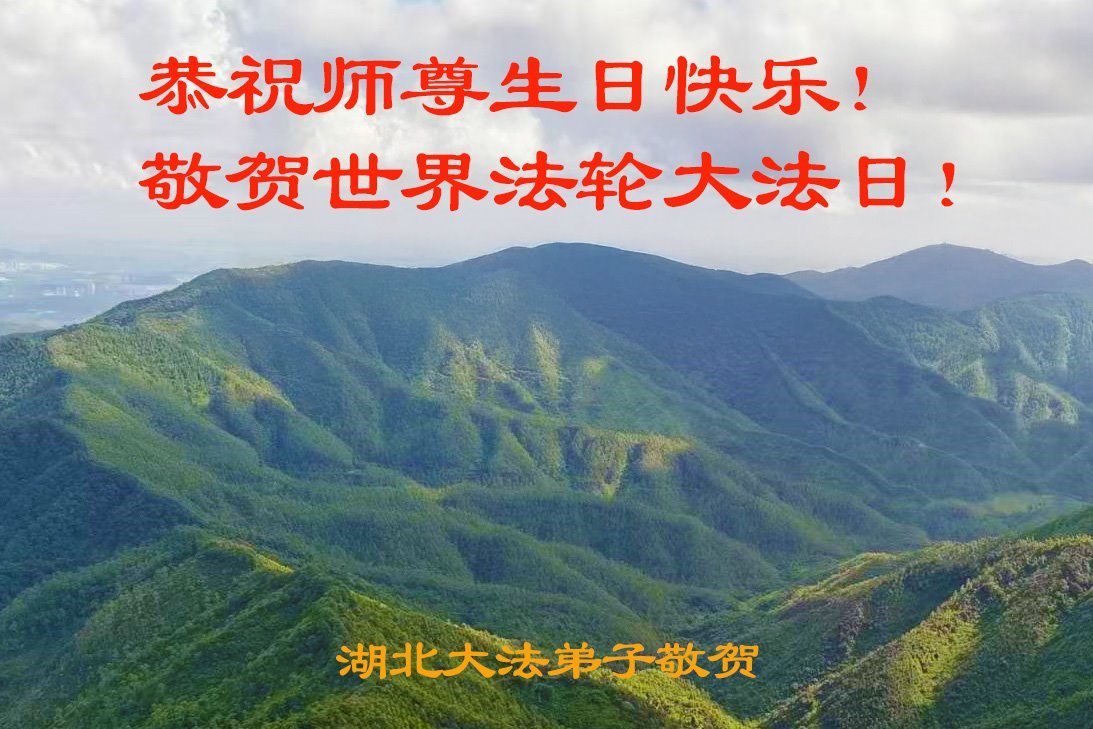 弟子一定学好法,修好自己,形成整体,达到标准,兑现誓约! 湖北省咸宁市大法弟子恭贺世界法轮大法日!恭祝师父生日快乐!